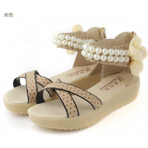 5Cgo 20168879975 夏季新款波西米亞水鑽串珠防水台厚底邏馬高跟坡跟涼鞋女 MIK93000