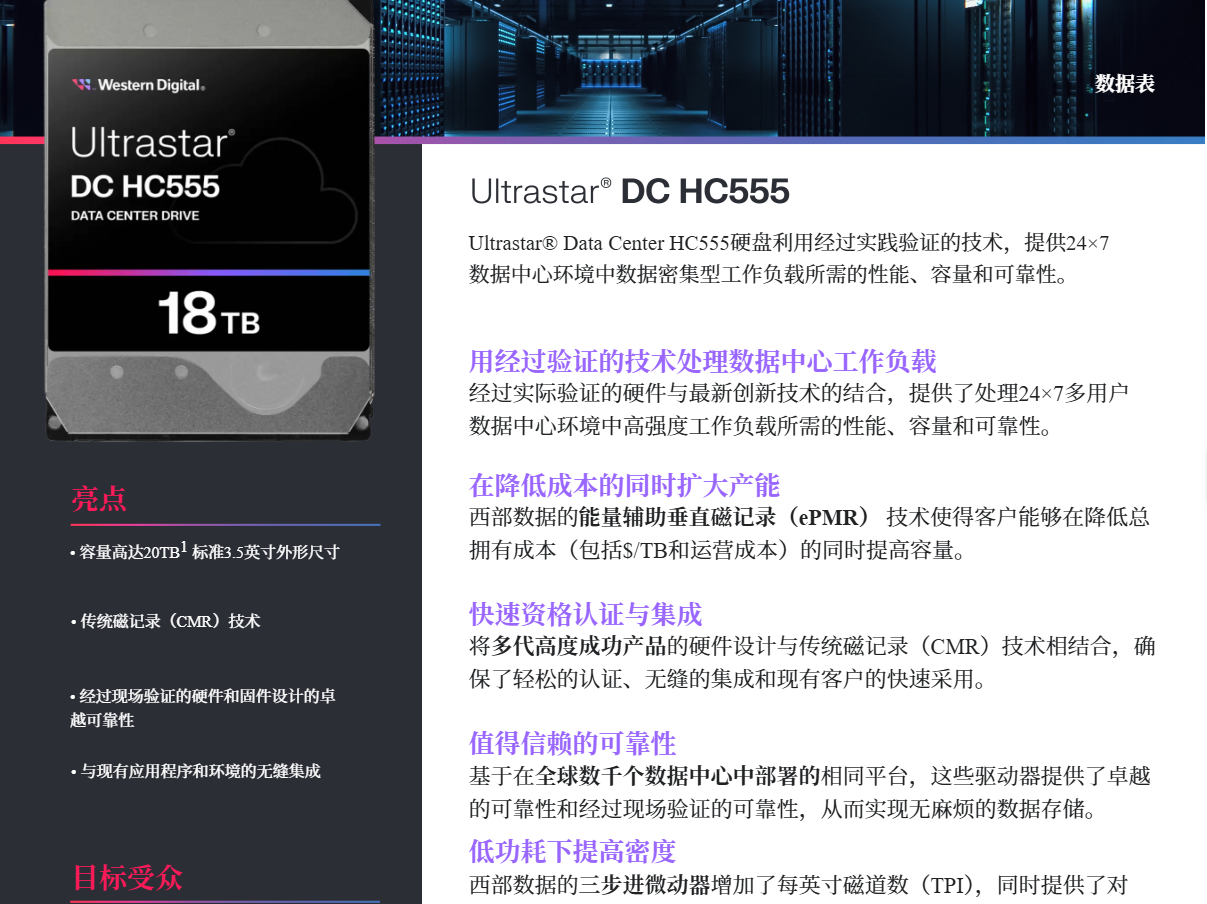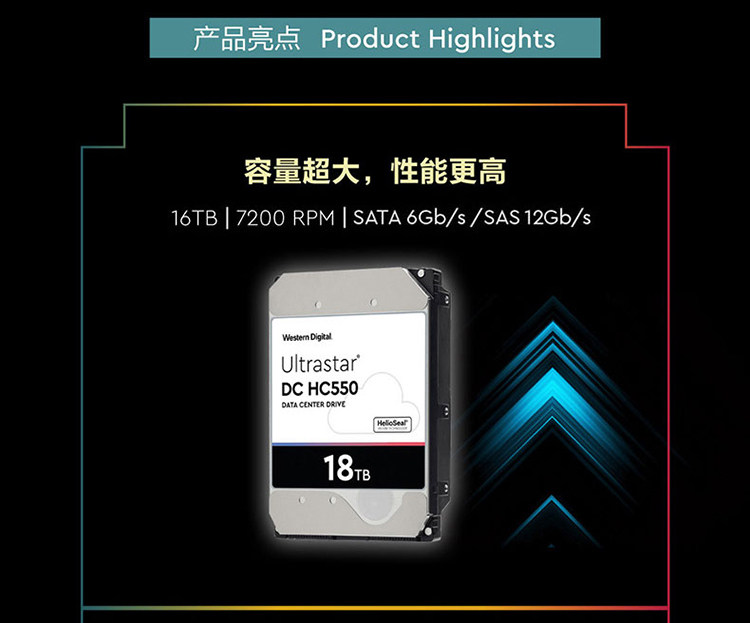 5Cgo【權宇】WD西數HC555氦氣18TB3.5寸HC555 WUH722018CLE6LSATA伺服器企業級存儲 含稅